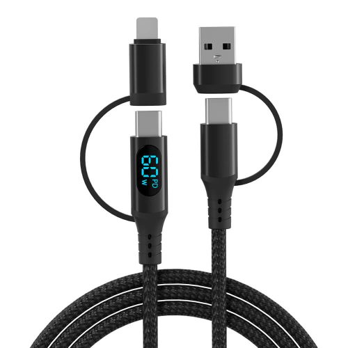 USB-C to Lightning Charging Cable applied to your iPhone, iPad, Mac, Air pods, or iPod. Connectted with USB-A wall charger block.